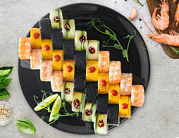 Креветка в кляре, сливочный сыр, огурец, икра масаго